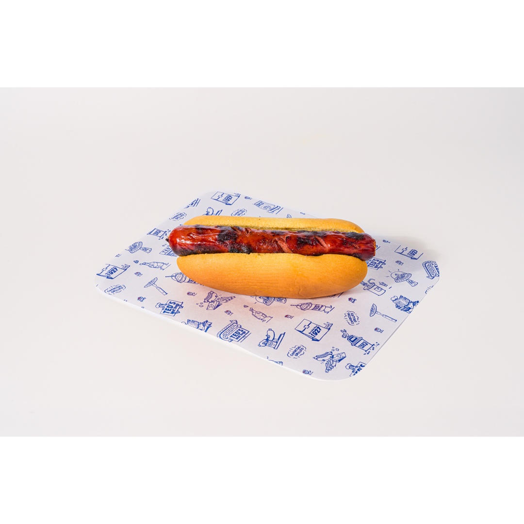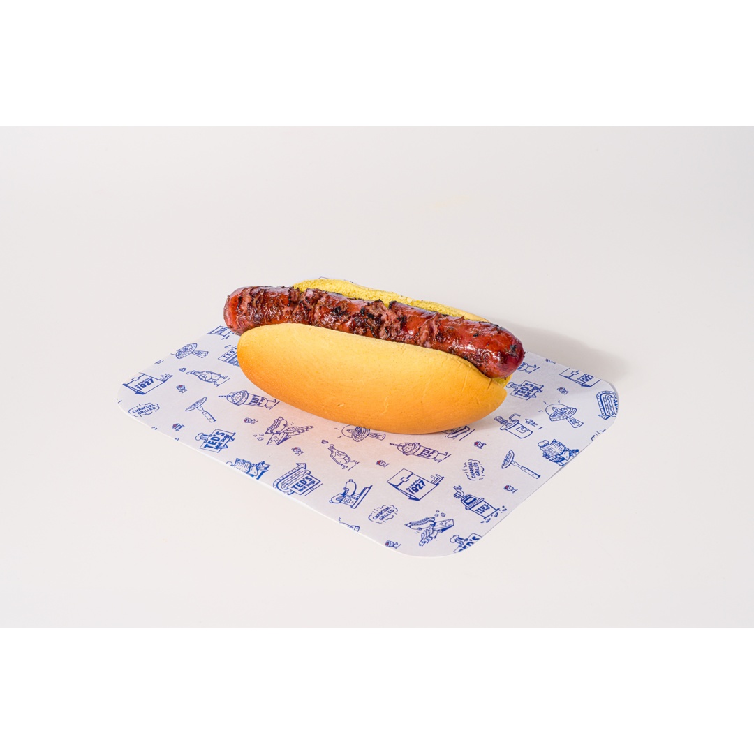 Sahlen's skinless hot dog served on a white hot dog bun.