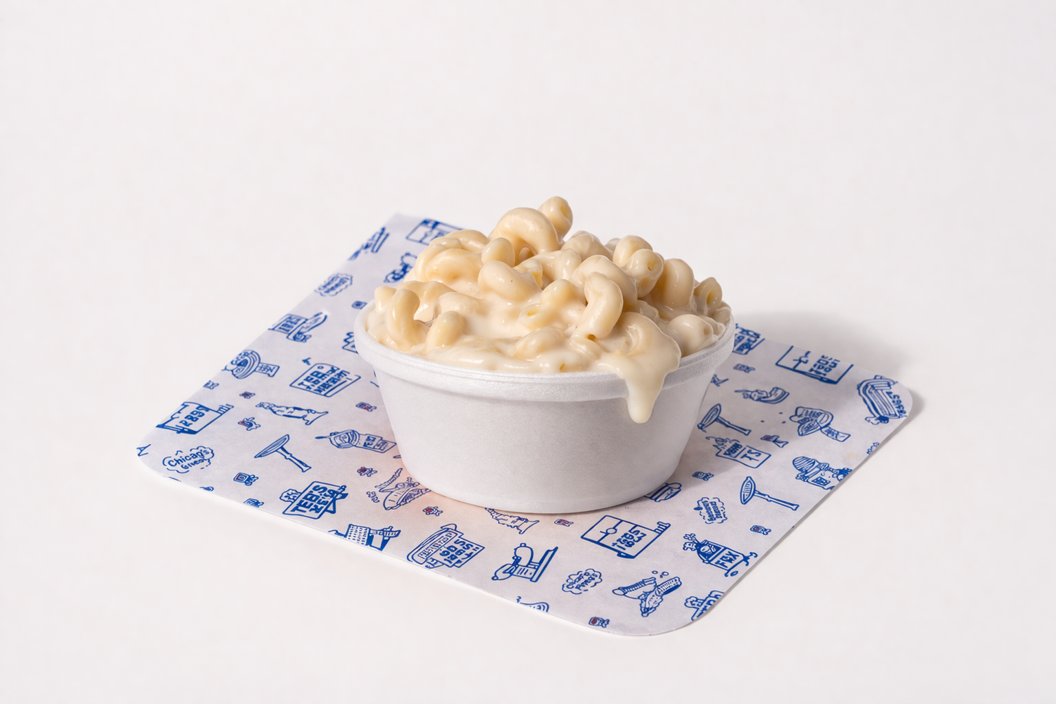 Mac-n-Cheese, fries or apple sauce, and a kiddy sized drink or milk.
