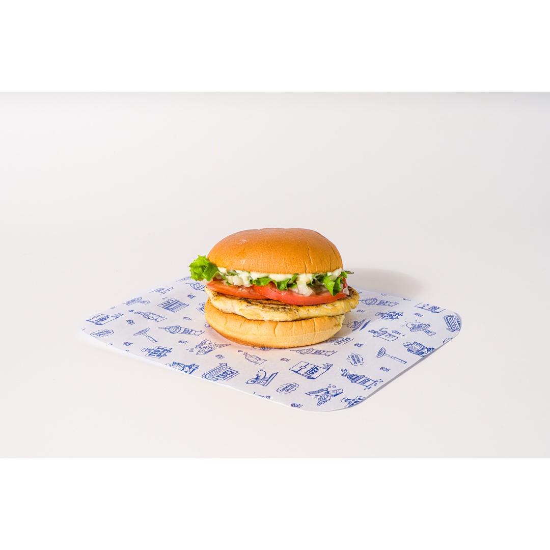 All natural, hormone free 4 oz chicken breast with bacon, lettuce and tomato.